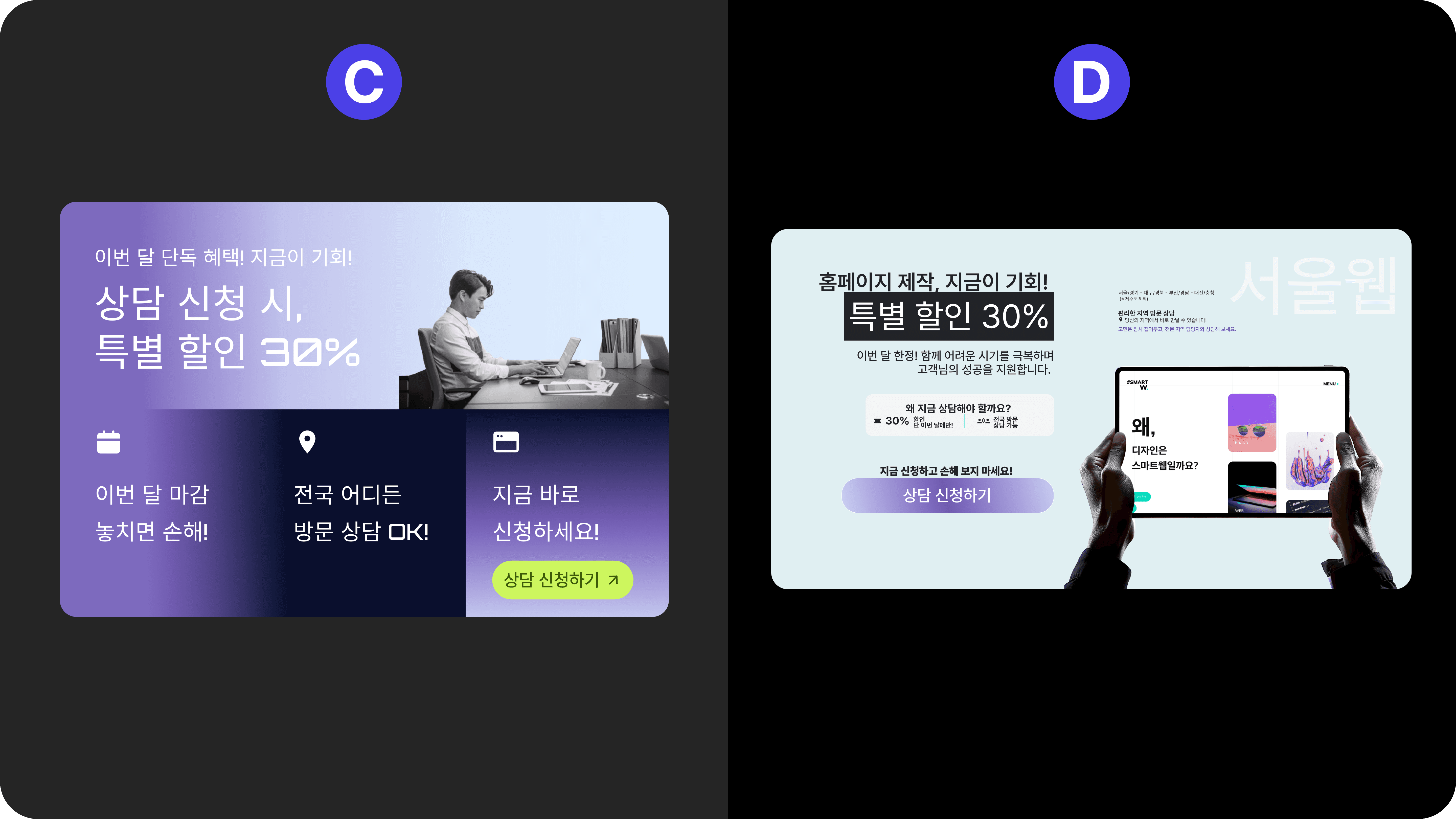 Designed four different banner styles to test various aesthetics and visual messaging.