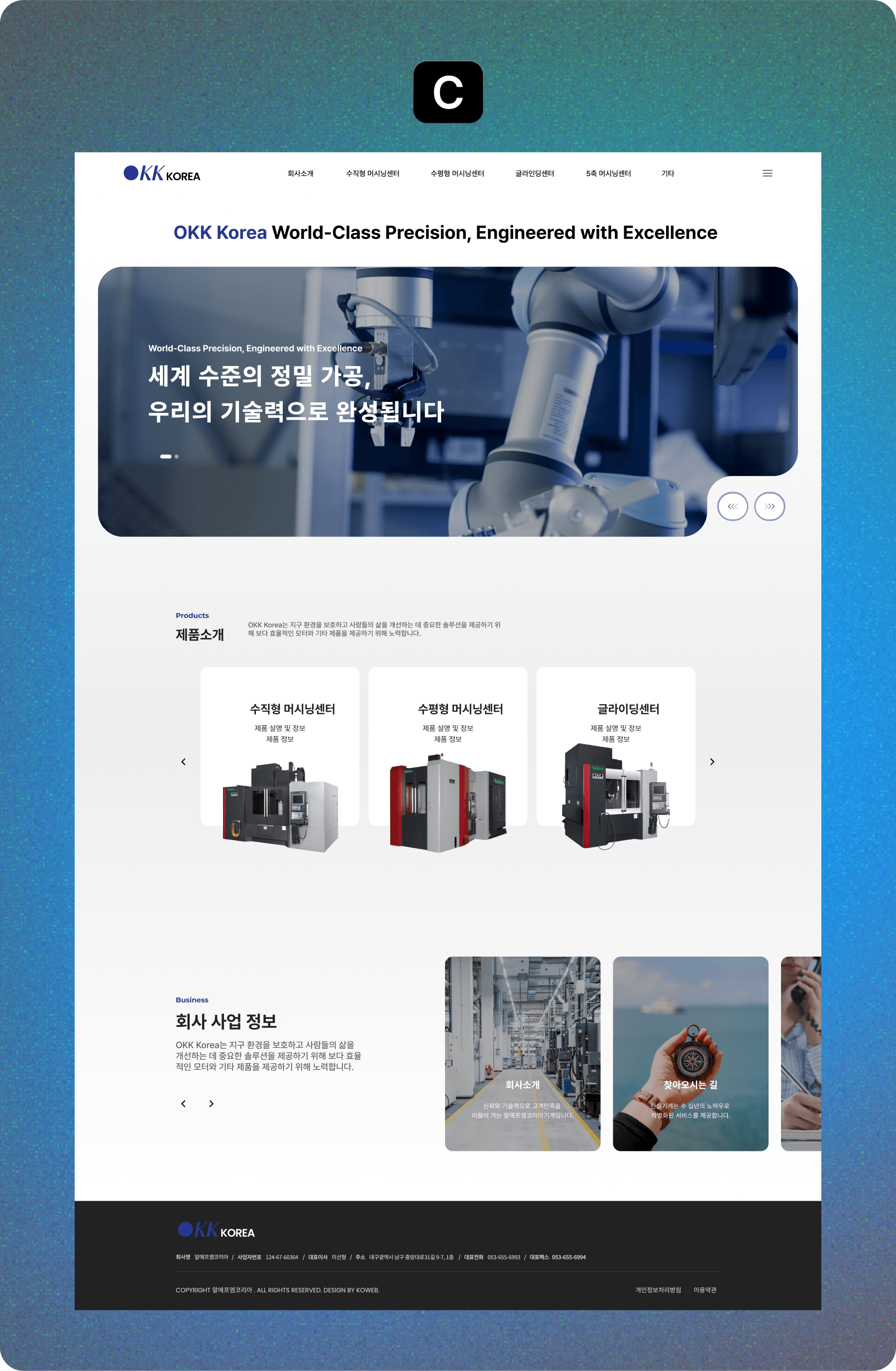 OKK Korea is a manufacturing company specializing in the production and sale of high-precision machine tools. To enhance their online presence and provide a more professional and user-friendly experience, the company aimed to create a website that effectively showcases its products and company information.